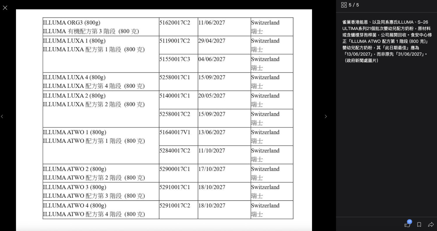 新聞連接: https://www.hk01.com/%E7%A4%BE%E6%9C%83%E6%96%B0%E8%81%9E/60310303/illuma%E8%83%BD%E6%81%A9s-26-ultima%E7%AD%8921%E6%89%B9%E6%AC%A1%E5%A5%B6%E7%B2%89%E6%88%96%E5%90%AB%E8%A0%9F%E6%A8%A3%E8%8A%BD%E5%AD%A2%E6%A1%BF%E8%8F%8C-%E9%9B%80%E5%B7%A2%E5%9B%9E%E6%94%B6