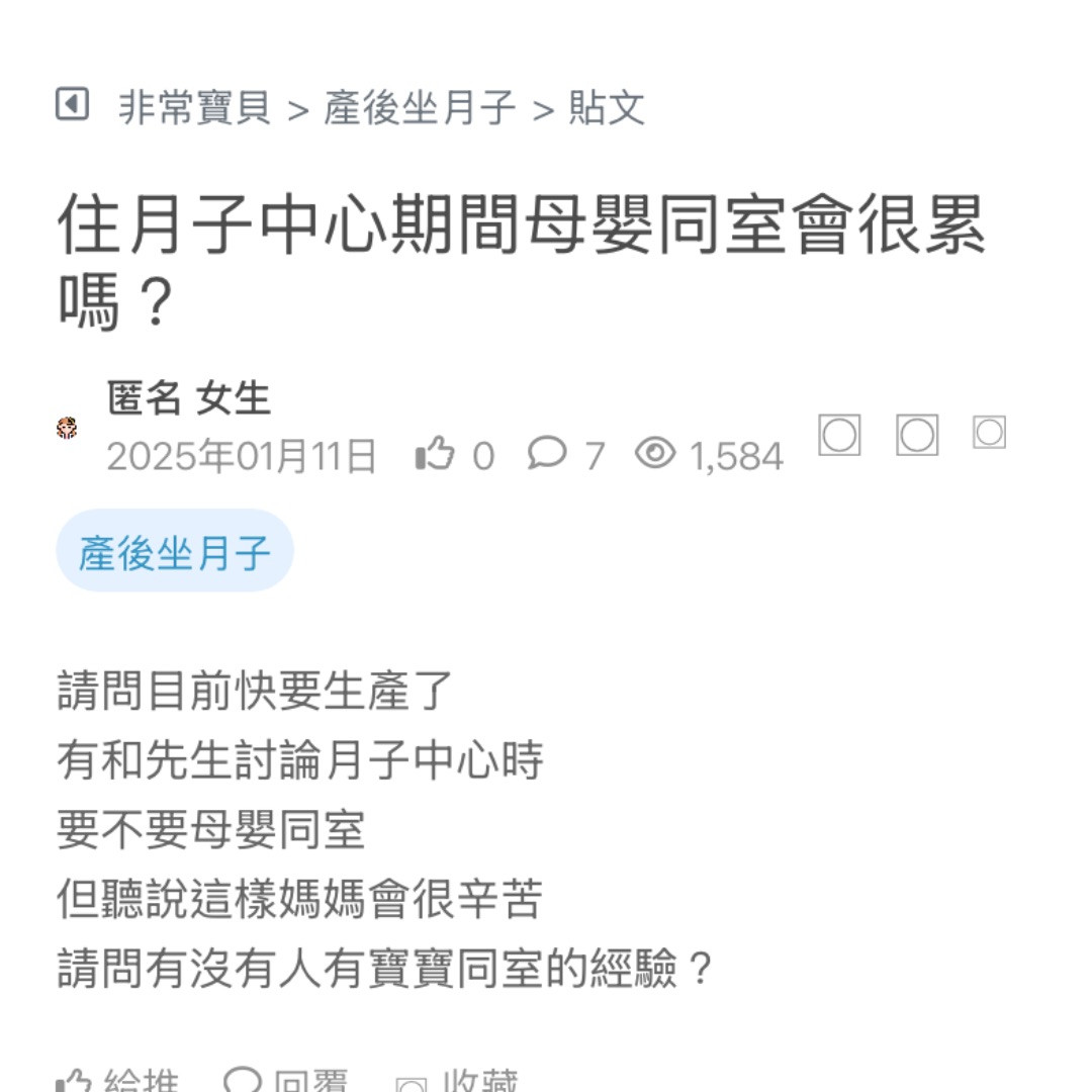 我是第一胎,新手媽媽,0經驗 懷孕25w 雖然預產期還沒到 原本我們夫妻都說好,產後就給我住月子中心休息調養 但這幾天老公忽然一百八十度大轉變 堅決反對我去住 理由是覺得貴、不值得、家裡可以照顧 (我給他看價格,他才反悔) 心好累,超擔心沒住月中自己沒辦法好好休息 產後身體恢復不好,都沒人幫忙怎麼辦? 後來老... 看更多