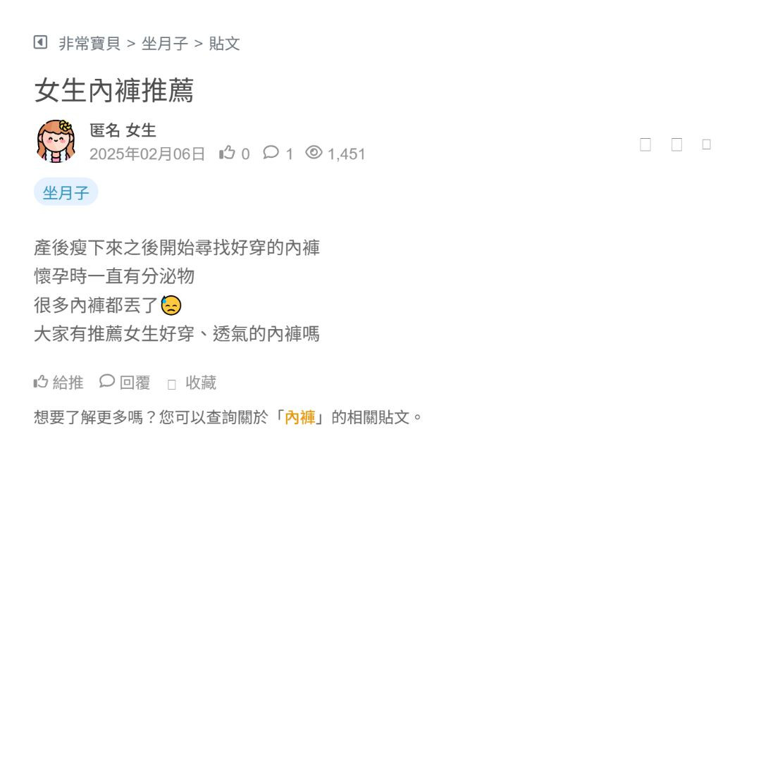 很需要產後塑身衣讓我回覆體態 少女的身材快回不去了😭 請問有沒有推薦不緊、有效的產後塑身衣 謝謝大家~ 看更多