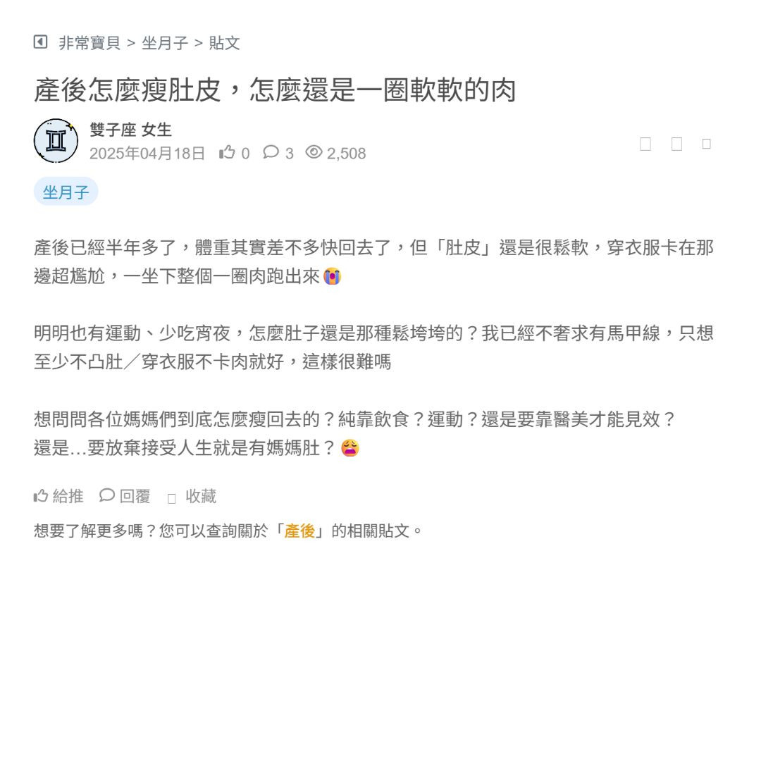 產後有稍微瘦下來幾公斤 但肚子還是凸凸 有媽咪推薦的產後塑身衣嗎 感謝 看更多