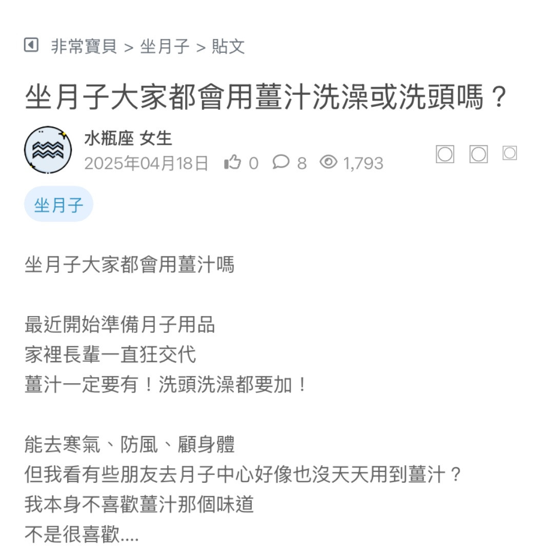 想問大家月子期間真的有認真用薑汁嗎?