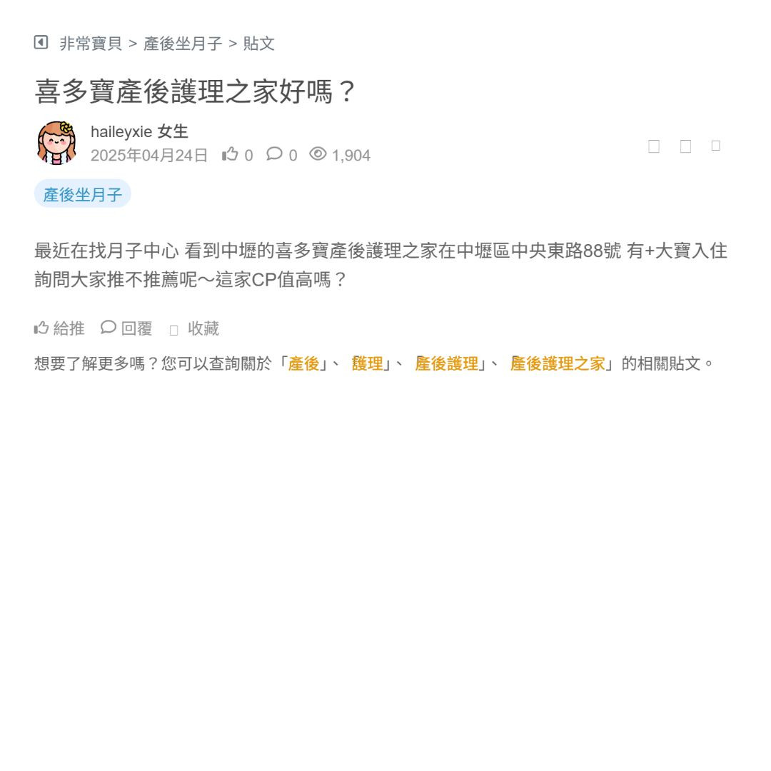 最近在找月子中心 看到中壢的喜多寶產後護理之家在中壢區中央東路88號 有+大寶入住 詢問大家推不推薦呢~這家CP值高嗎?