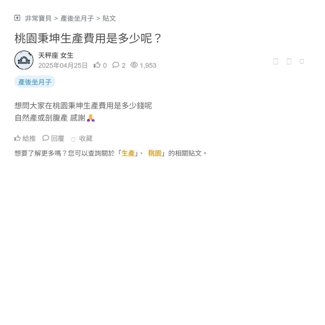 第一胎~~ 懷孕二個月了 最近在看桃園的月子中心 我們家在藝文特區附近 目前看了桃園秉坤跟桃園禾馨 想知道這2間評價 哪一個比較好? 包含寶寶照顧、設備新不新、隔音效果好嗎 房型部分 住起來的舒適度? 有相關資訊歡迎大家幫忙分享 感謝🥹 看更多