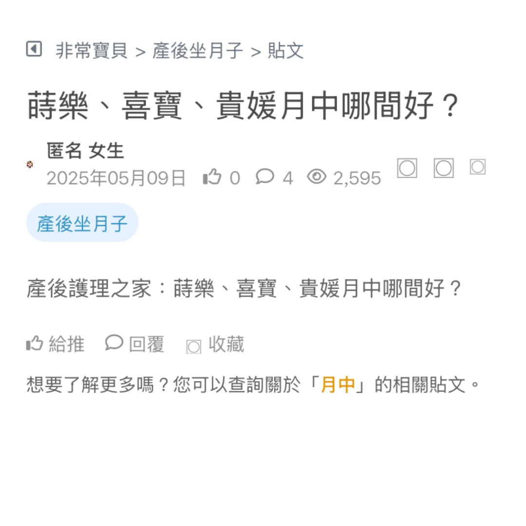 最近在找月子中心 看到中壢的喜多寶產後護理之家在中壢區中央東路88號 有+大寶入住 詢問大家推不推薦呢~這家CP值高嗎? 看更多