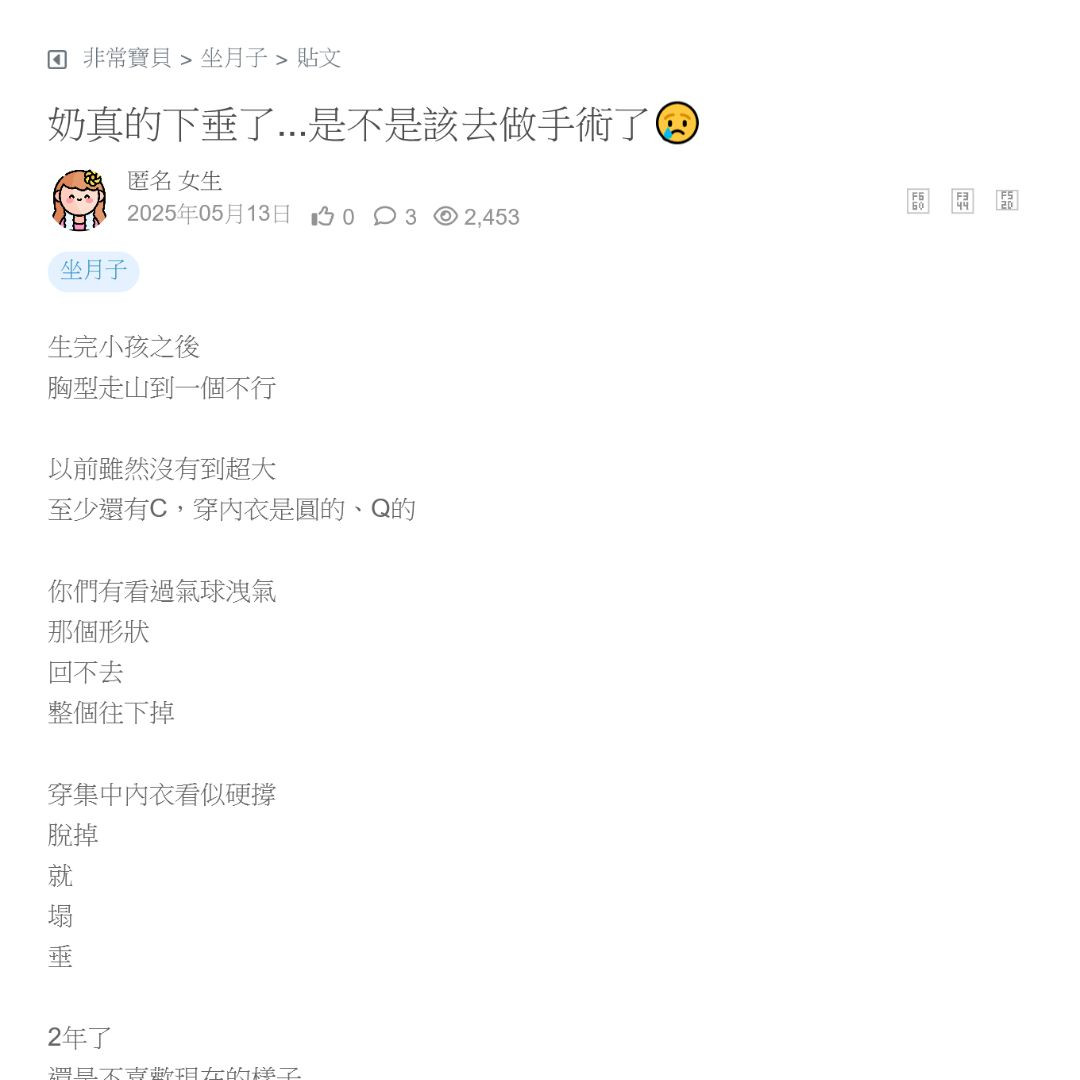 奶真的下垂了...是不是該去做手術了😢