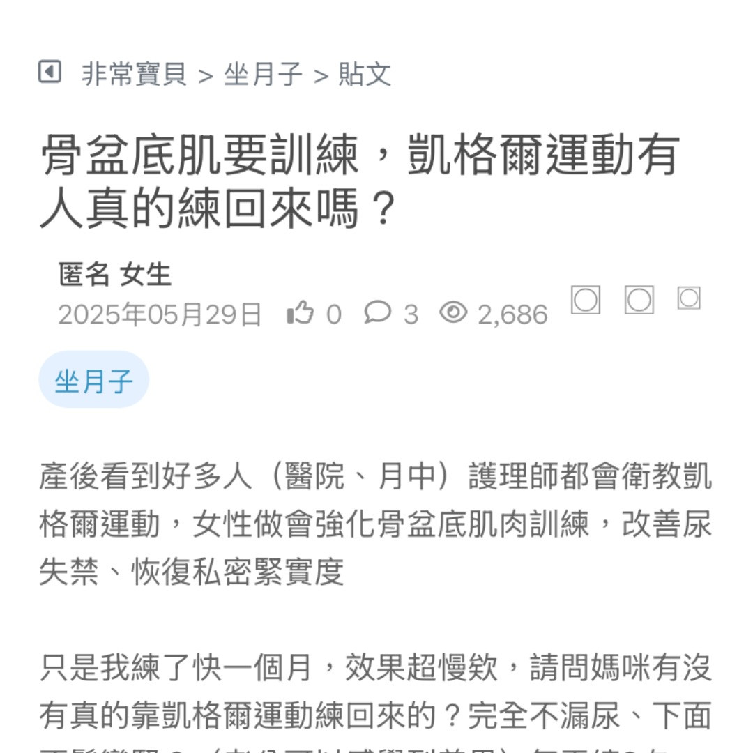 產後覺得好鬆弛 尿尿都一下就來 憋不住 難道我老了嗎 我才不到30而已… 看更多