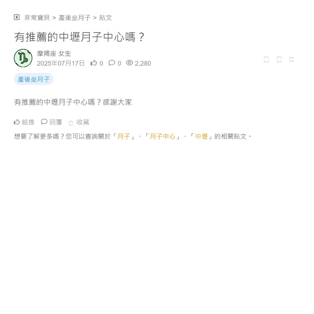 有推薦的中壢月子中心嗎?感謝大家