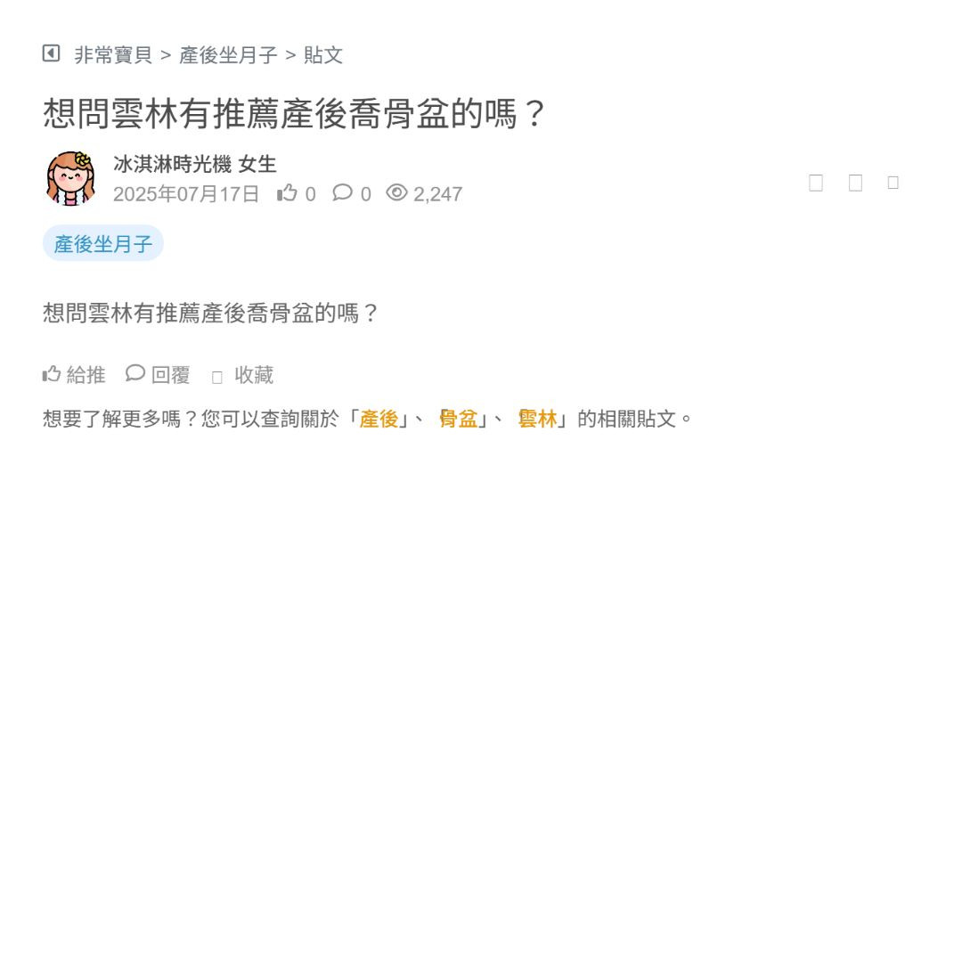 月子中心住完後返家了 生完小孩之後已經休息了二個月 大家有沒有推薦喬骨盆的地方 想去喬一下啦 聽說會縮小範圍🥹 看更多