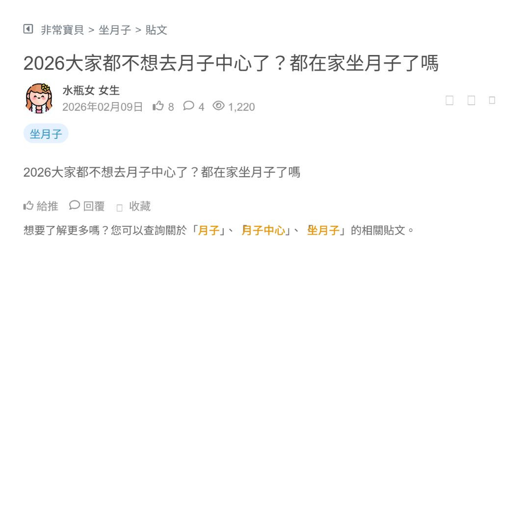 2026大家都不想去月子中心了?都在家坐月子了嗎
