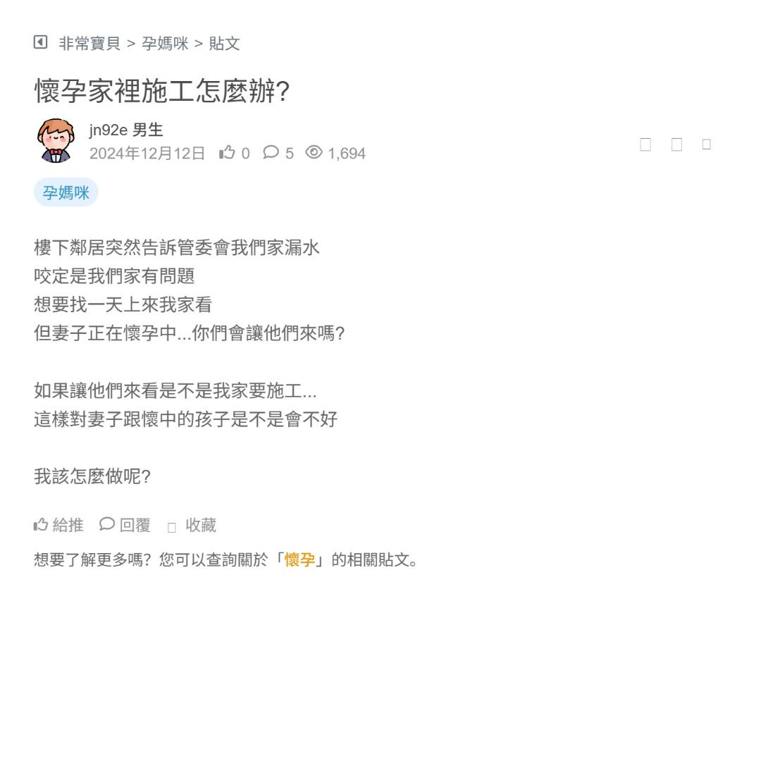 懷孕施工對胎兒會產生不好的影響,為了小孩我會先拒絕❌