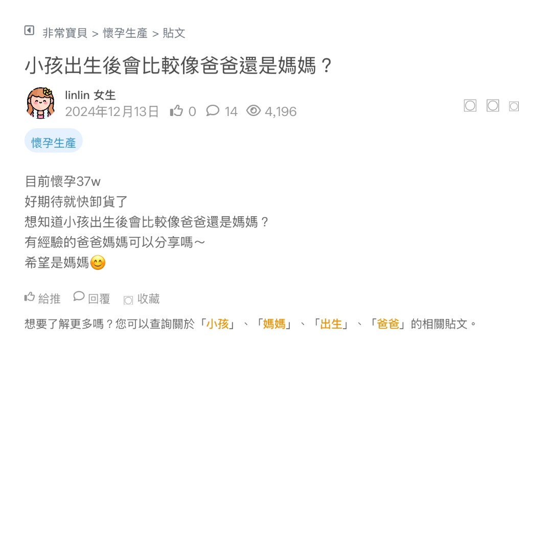 想知道小孩出生後會比較像爸爸還是媽媽?