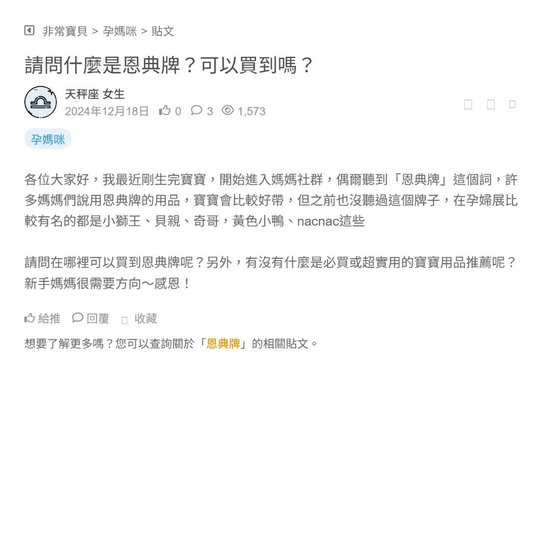 請問在哪裡可以買到恩典牌呢?另外,有沒有什麼是必買或超實用的寶寶用品推薦呢?新手媽媽很需要方向~感恩!