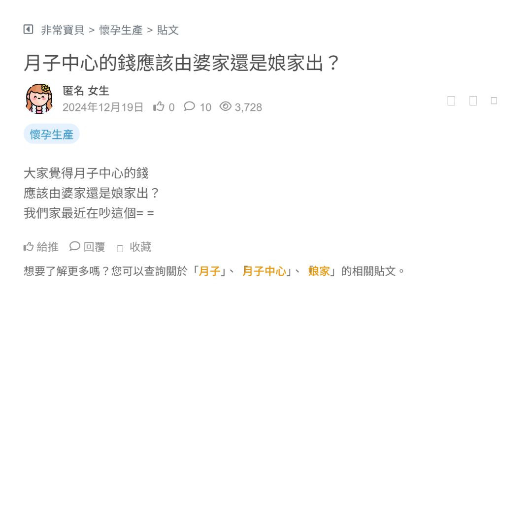 最近跟老公為了月中誰要出錢鬧得不太愉快,婆家直接擺明說不幫忙出 為什麼要拒絕? 結婚大家是ㄧ家人,以為婆家可以互相支持,結果他們態度很堅決 昨天前...