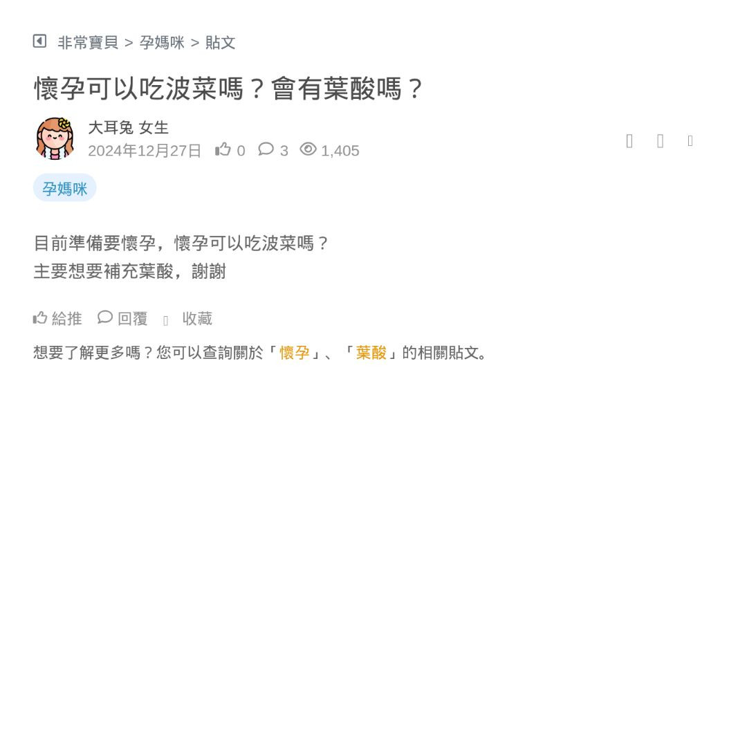 目前準備要懷孕,懷孕可以吃波菜嗎?