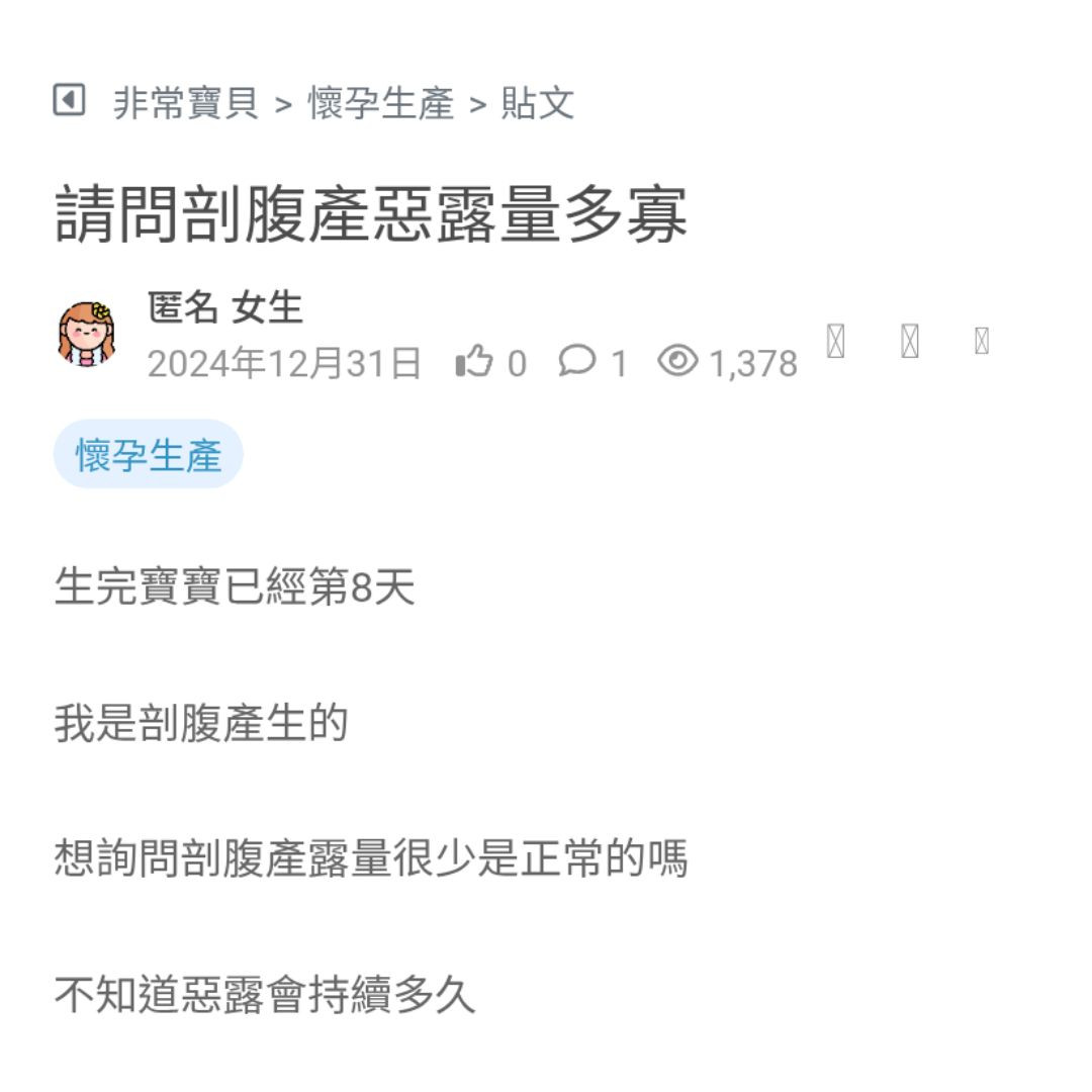 想詢問剖腹產露量很少是正常的嗎