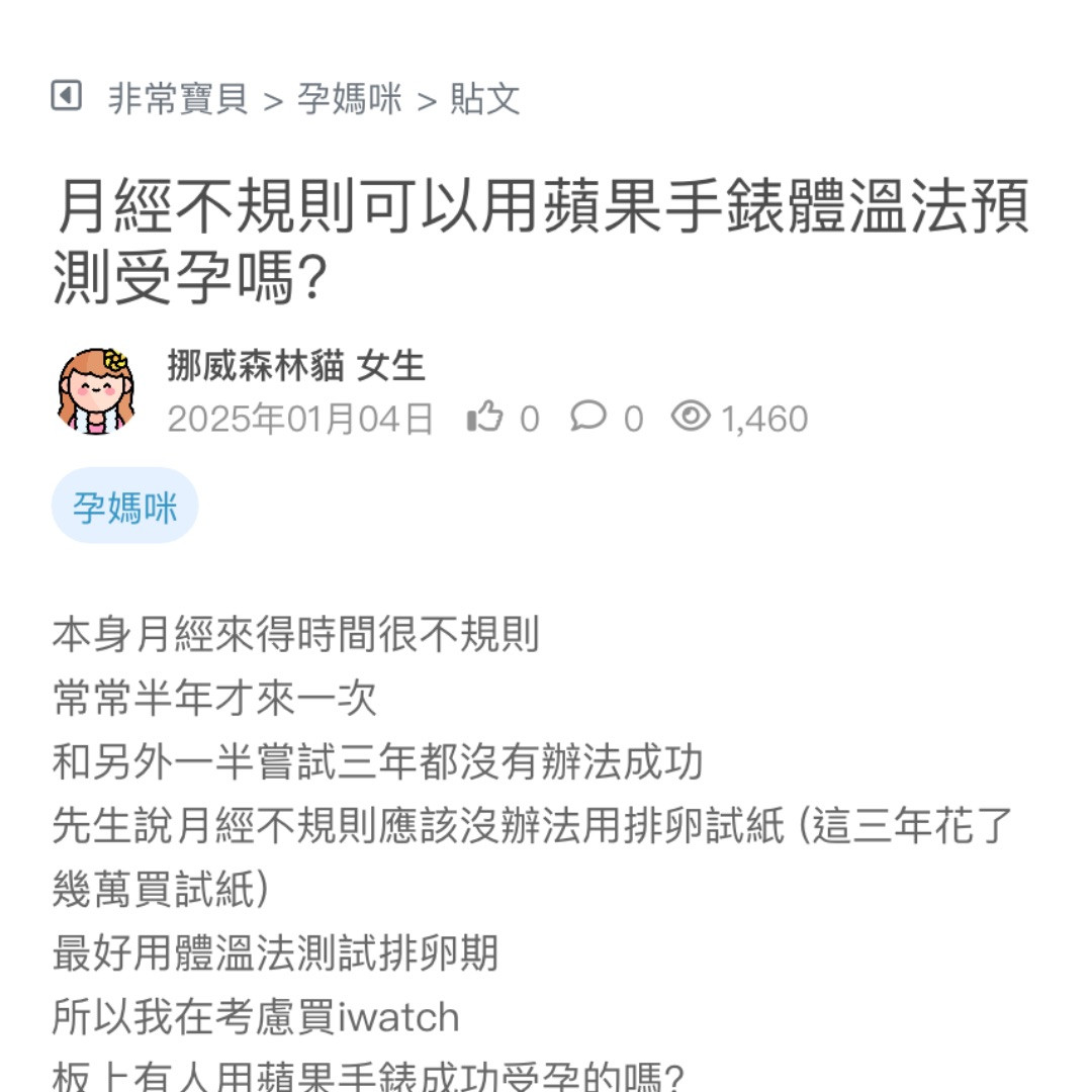 板上有人用蘋果手錶成功受孕的嗎?