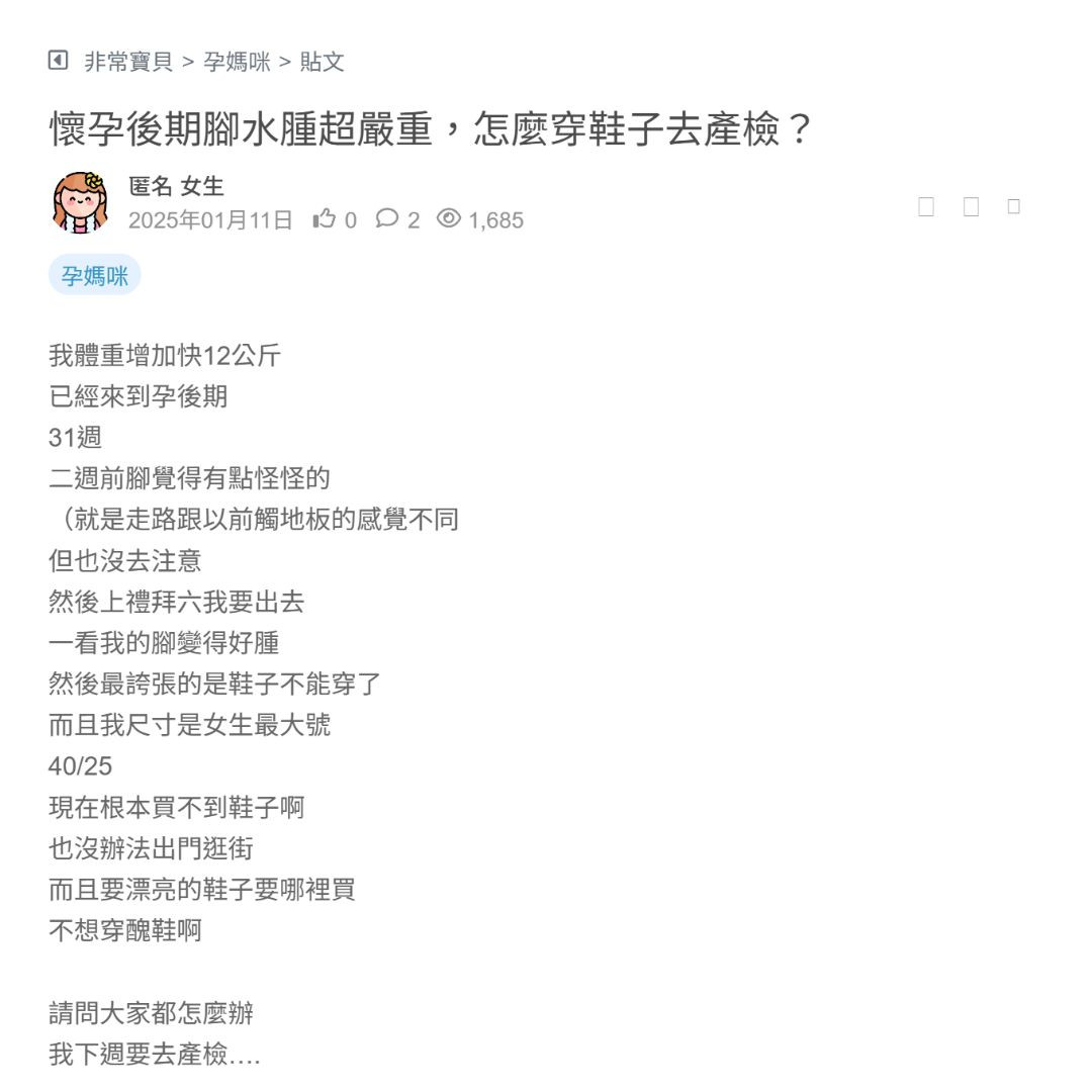 懷孕後期腳水腫超嚴重,怎麼穿鞋子去產檢?