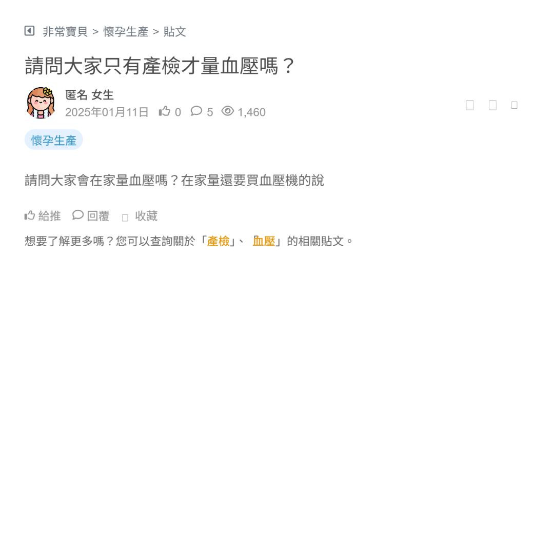 請問大家只有產檢才量血壓嗎?