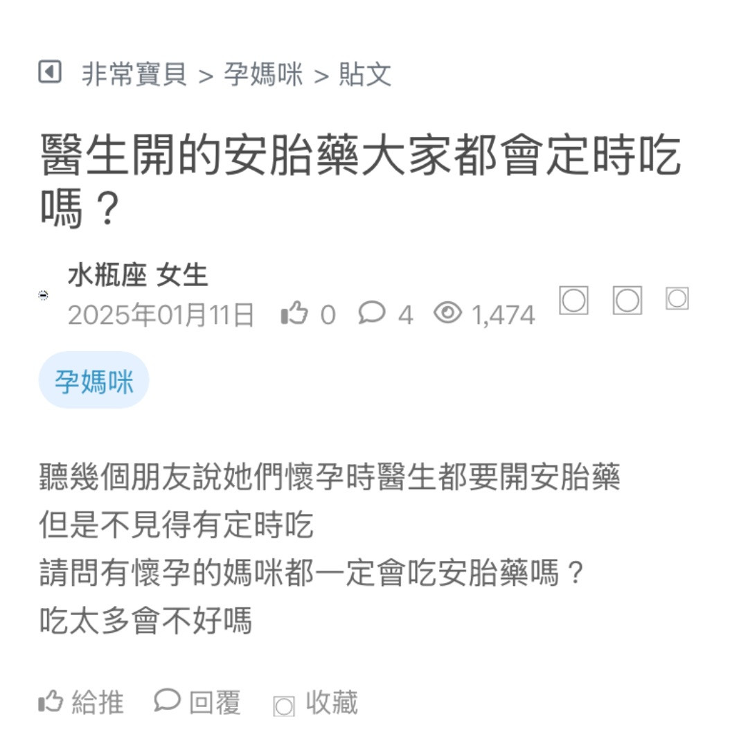 聽幾個朋友說她們懷孕時醫生都要開安胎藥
