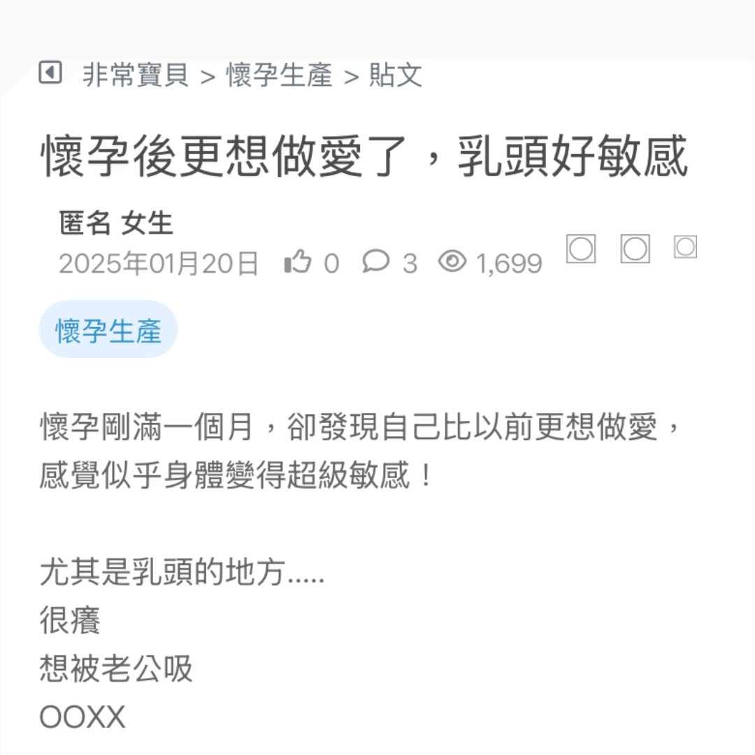 懷孕剛滿一個月,卻發現自己比以前更想做愛,感覺似乎身體變得超級敏感!