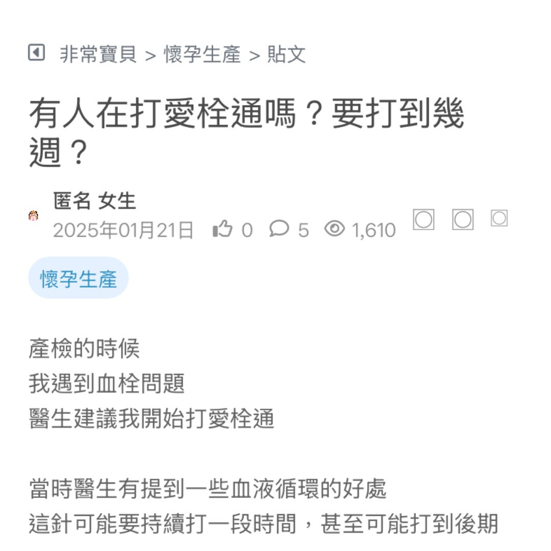看到這個新聞感覺好難過 😢 最近婆婆一直要我生小孩 (他說他們以前都生5個或10個 問我們怎麼還沒有 但跟老公登記後真的不敢生 懷胎10個月好難 生小孩好難 養小孩好難 到底有什麼是簡單的… 【新聞】肺部版心肌梗塞!產後3天「肺栓塞」新手媽媽不幸離世 宋珮文 林義邦,張立陵 2025年3月10日 產婦懷孕期... 看更多