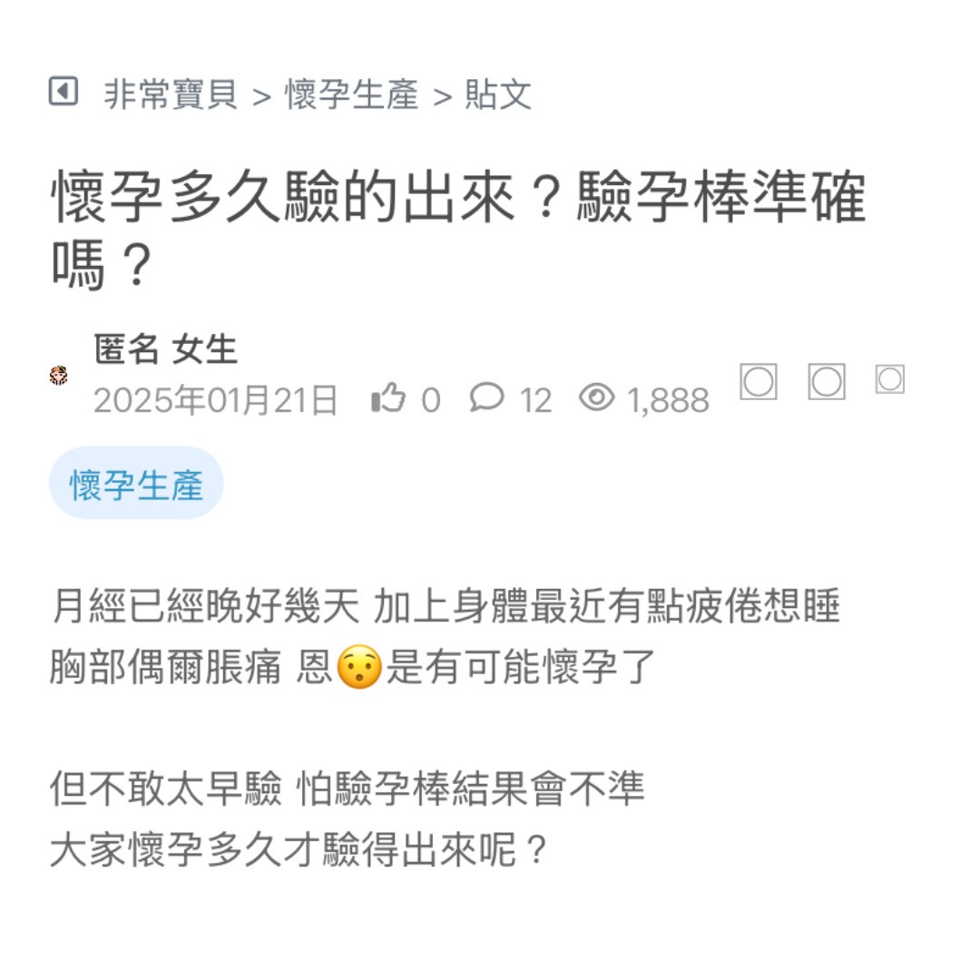 想請教大家,通常受孕後幾天驗孕會比較準確呢? 最近和先生正在備孕 每個月都充滿期待XD 排卵期也努力把握機會愛愛 老公快被榨乾了 🍋 但這幾天開始覺得時間好...