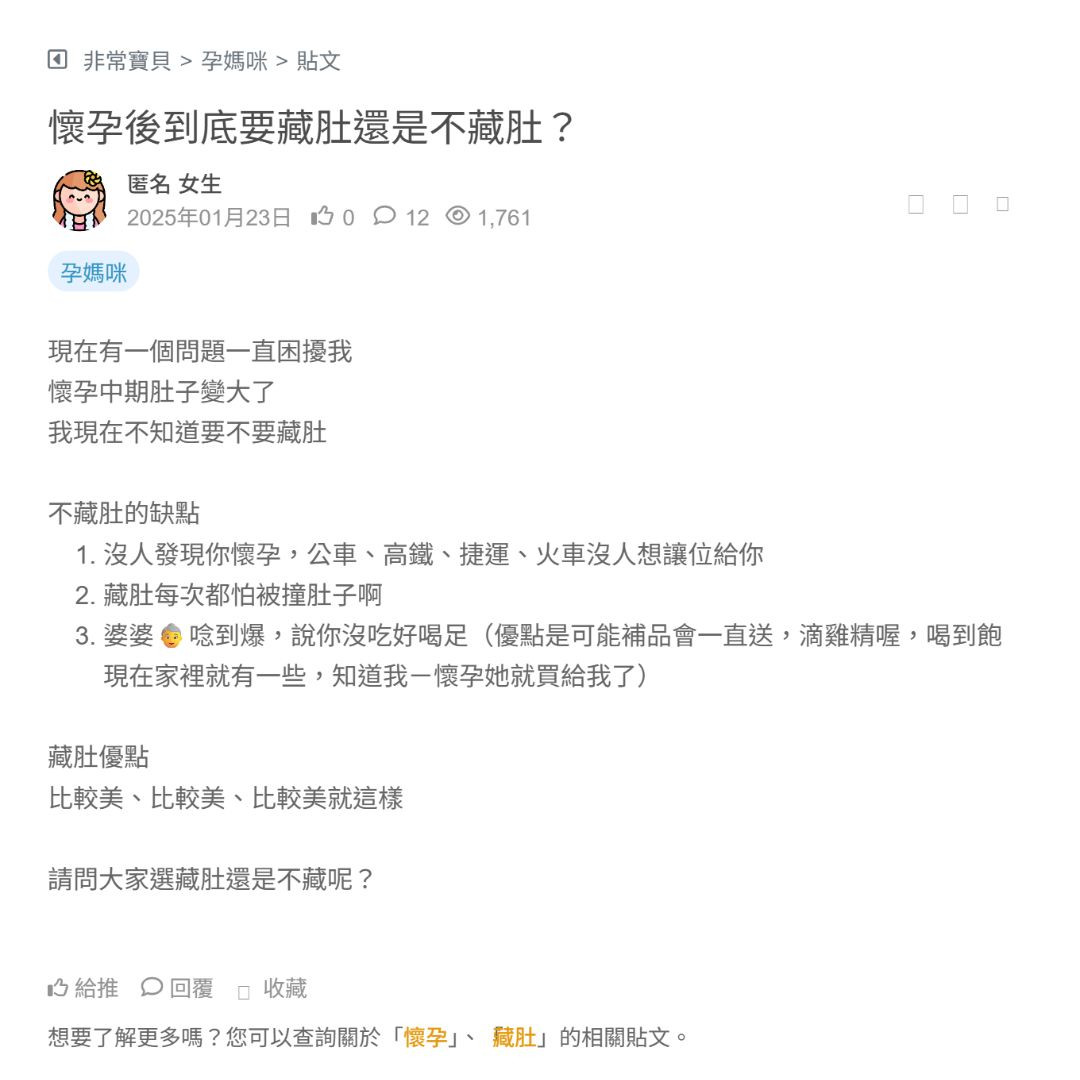 真的不想露啊,藏肚比較安心,而且不想被知道