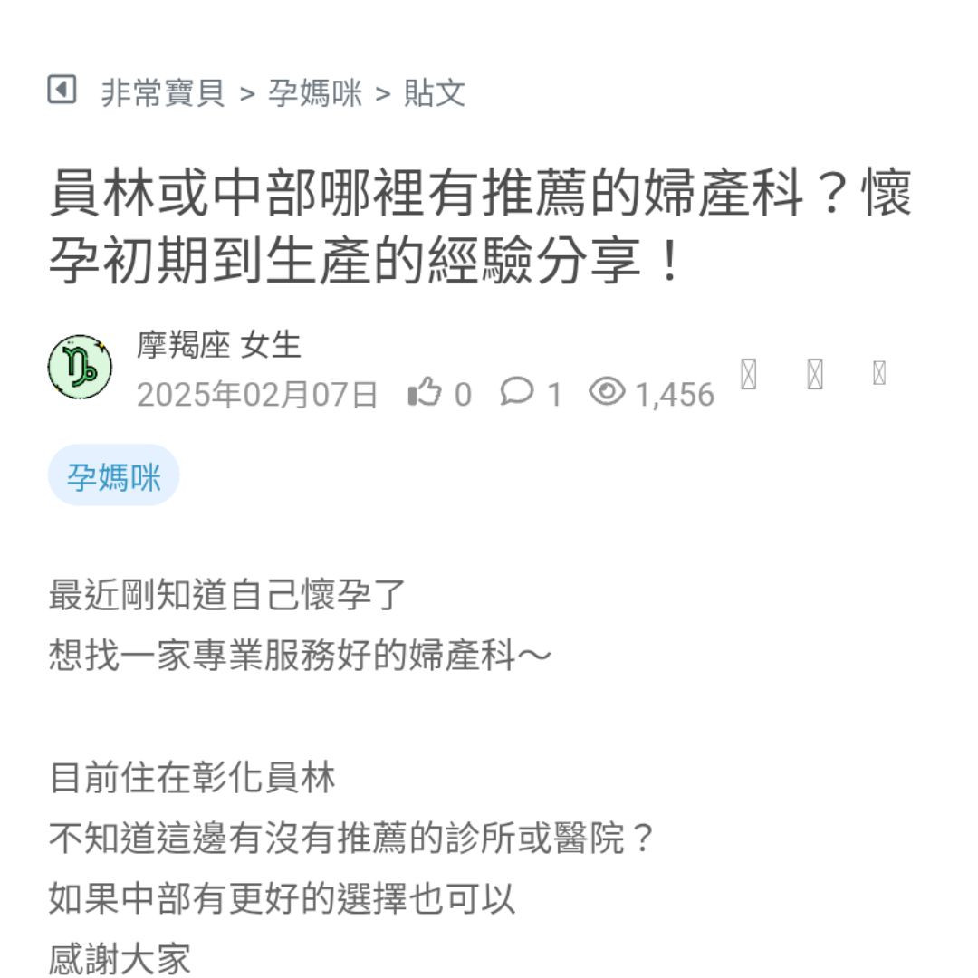 想請問新竹市區有推薦的婦產科嗎?想找固定診所,謝謝~ 看更多