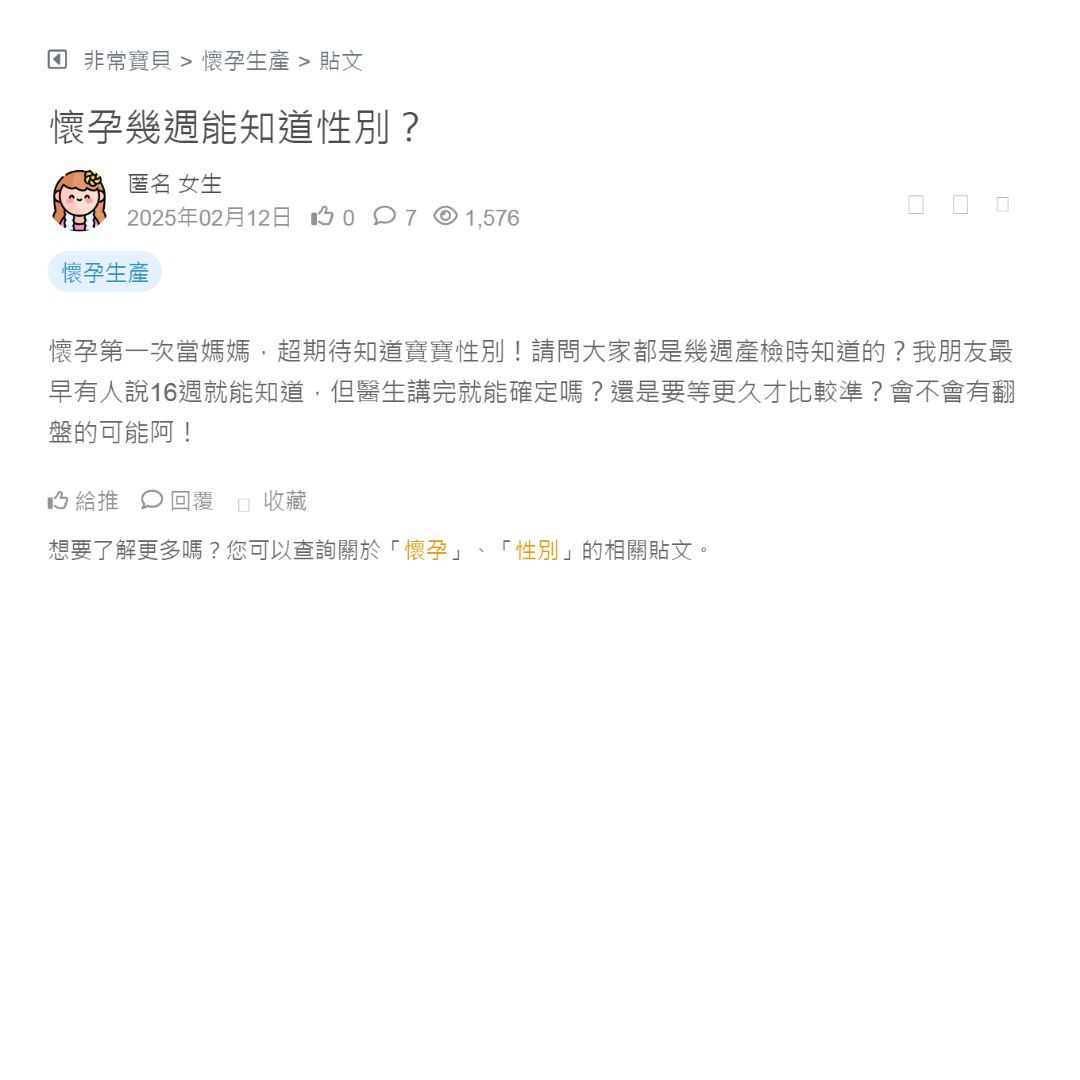 性別這件事真的要等到20週以上比較穩,聽過不少人16週說女生,後面變男生的例子😆