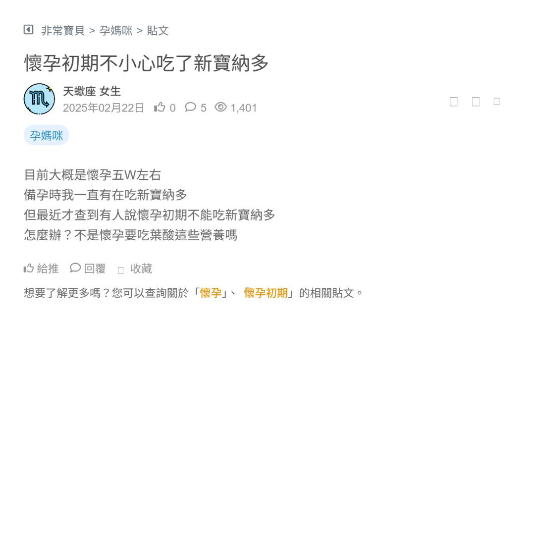後來才查到懷孕初期不能吃新寶納多