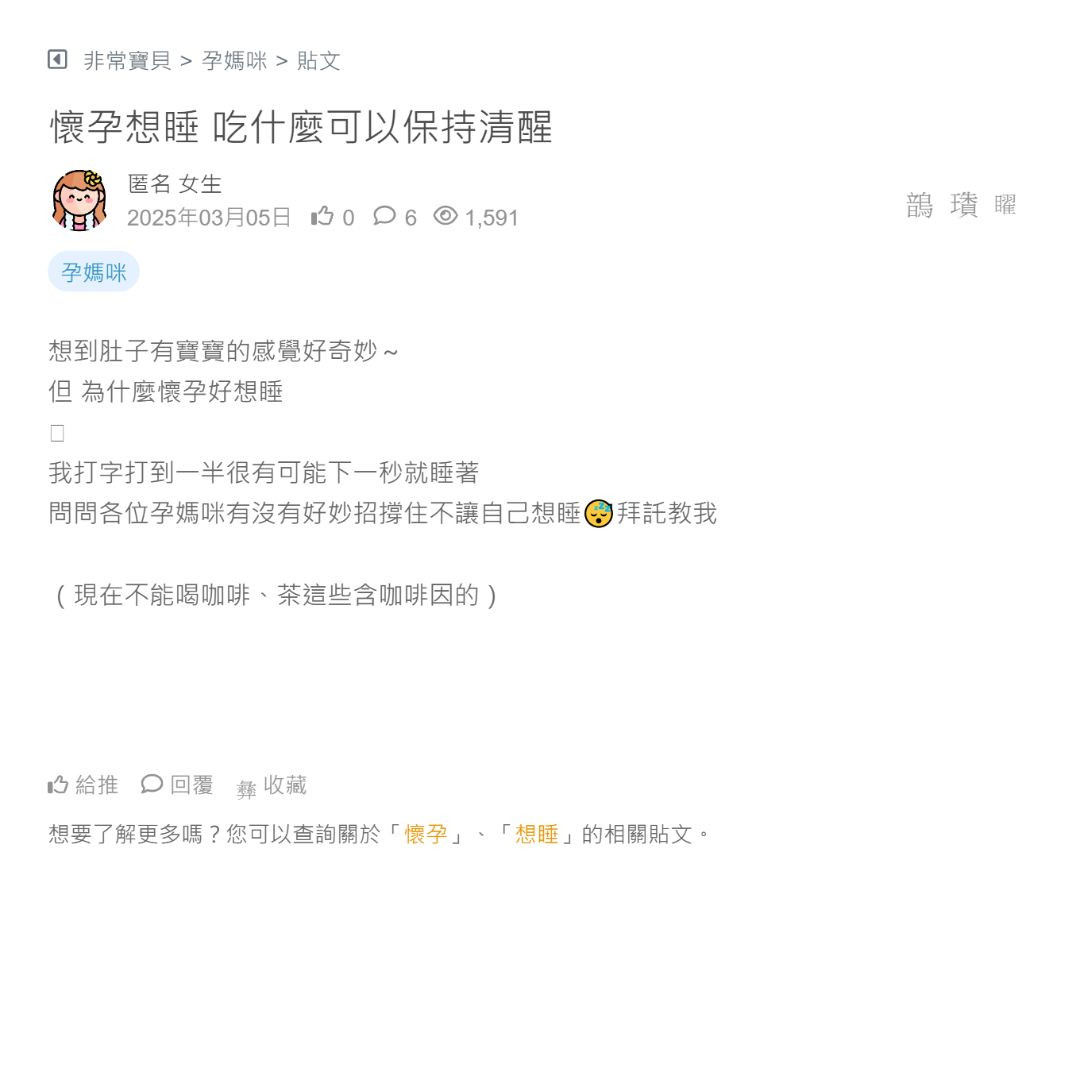 問問各位孕媽咪有沒有好妙招撐住不讓自己想睡😴拜託教我