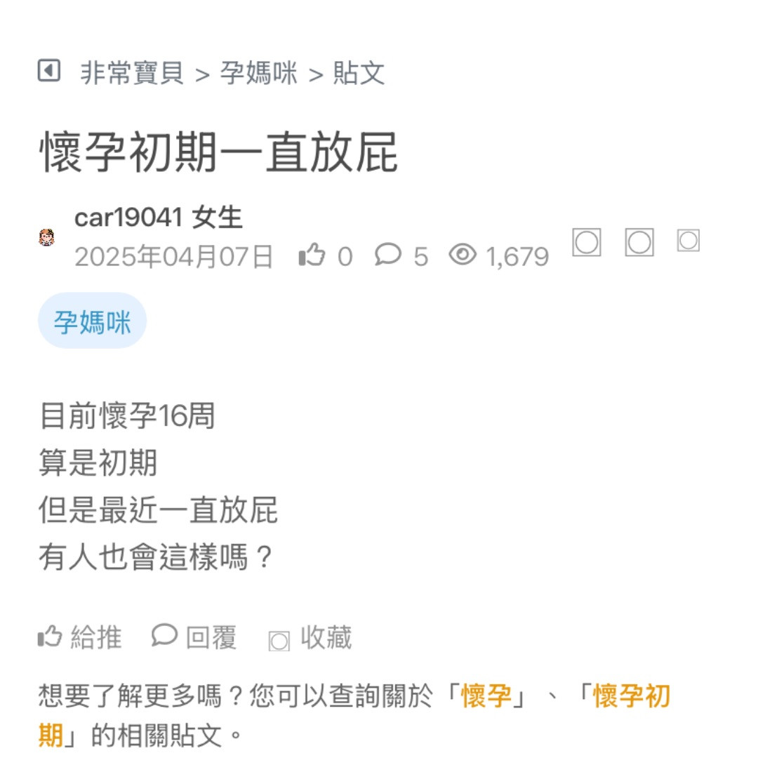 懷孕進入第四個月,肚子不明顯,但屁超級明顯,超不能憋! 昨天在便利商店排隊時忍不住噗了一聲,我還裝作沒事,有媽咪也這樣嗎?我該怎麼辦 看更多