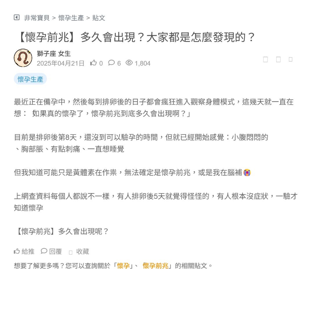 但我知道可能只是黃體素在作祟,無法確定是懷孕前兆,或是我在腦補😭