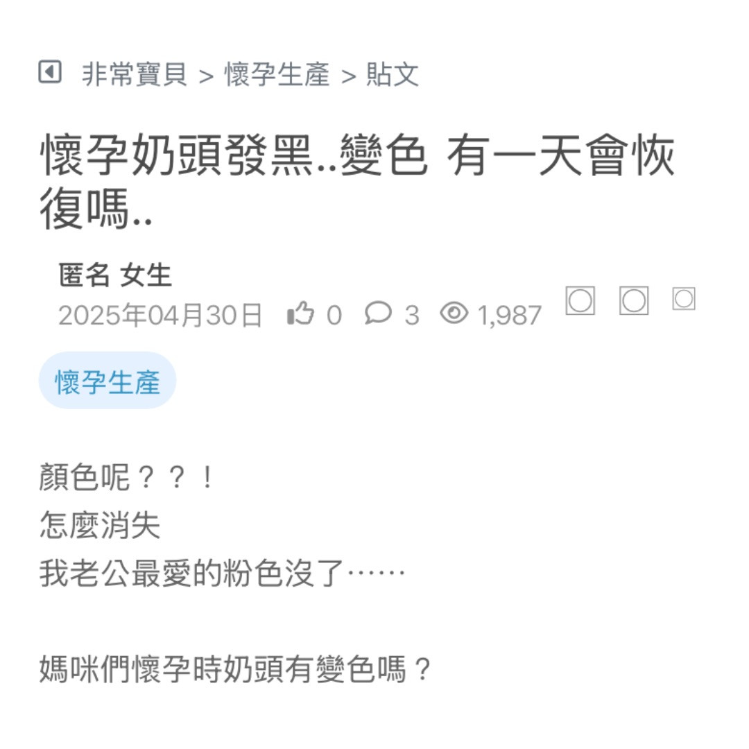 懷孕奶頭發黑..變色 有一天會恢復嗎..