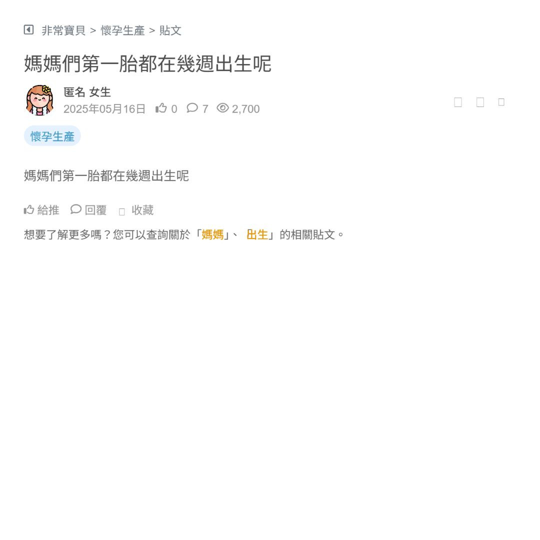 看到這個新聞感覺好難過 😢 最近婆婆一直要我生小孩 (他說他們以前都生5個或10個 問我們怎麼還沒有 但跟老公登記後真的不敢生 懷胎10個月好難 生小孩好難 養小孩好難 到底有什麼是簡單的… 【新聞】肺部版心肌梗塞!產後3天「肺栓塞」新手媽媽不幸離世 宋珮文 林義邦,張立陵 2025年3月10日 產婦懷孕期... 看更多