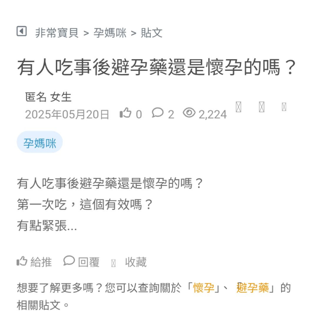 沒有想再生小孩的意思,但跟老公做愛忘了吃避孕藥,不會今年再生一個寶寶吧.... 我沒辦法負荷,有媽咪可以分享嗎,怎麼辦... 看更多
