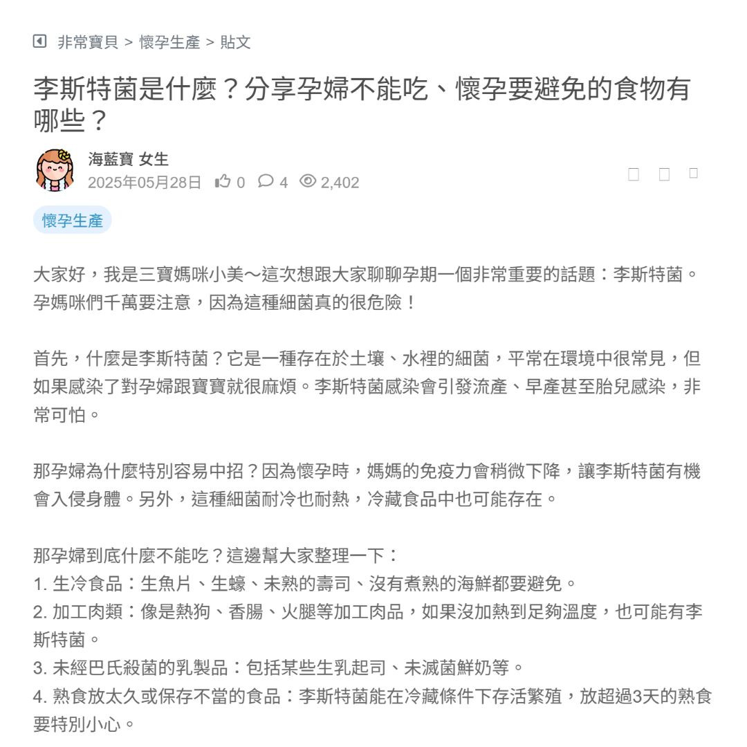 之前懷孕都不知道李斯特菌那麼可怕,感謝分享🙏