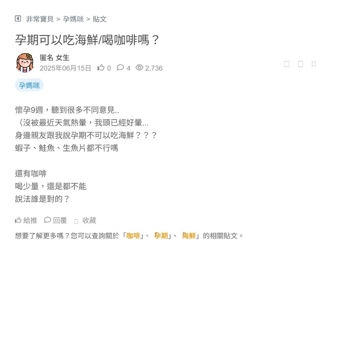 現在是懷孕後的第7天 好想知道懷孕後可不可以吃冰? 真的好想喝冰拿鐵喔☕️ 本來每天早上我都要一杯的 已經7天沒喝了 快一週耶⋯⋯ 要不要去買呢?好猶豫😔 看更多