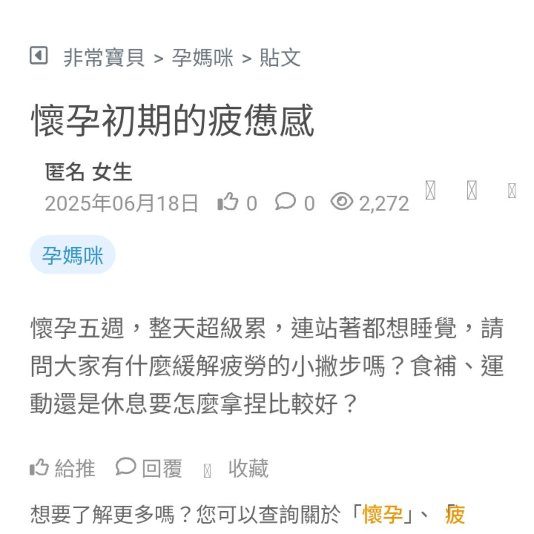 懷孕初期這幾天好想睡覺,有沒有方法能緩解這種疲倦的感覺? 看更多