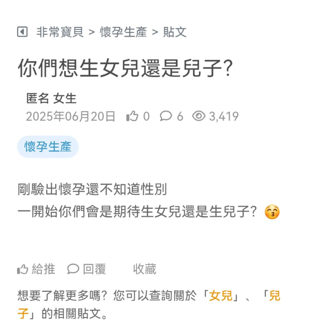 自從超音波檢查發現我生的是兒子 我生的不是女兒 而是兒子我老公就好不開心一直在煩我為什麼不生女兒⋯⋯ 不就1/2 乾 我哪能決定要不要生的性別?? 看更多