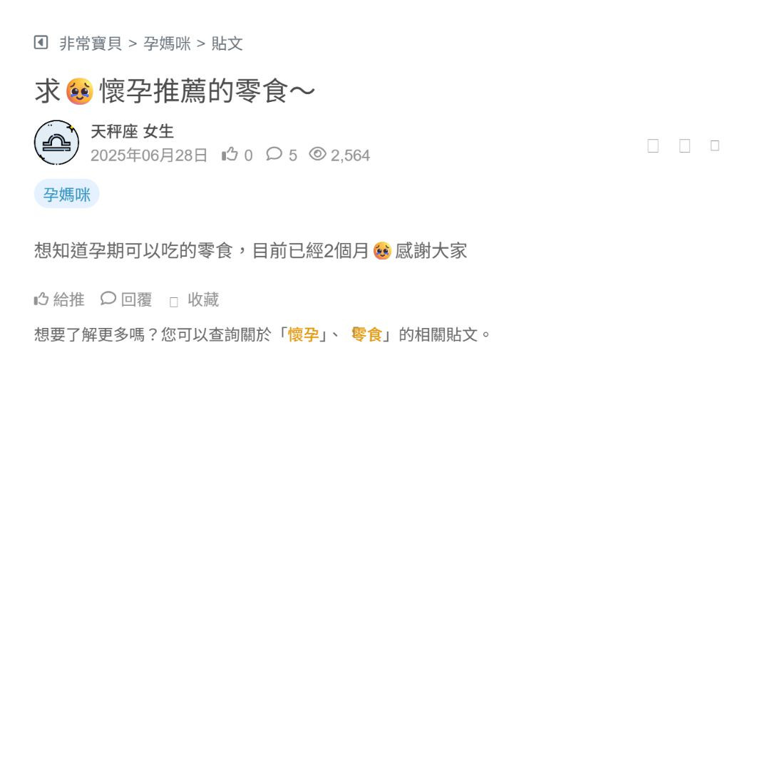 想知道孕期可以吃的零食,目前已經2個月🥹感謝大家