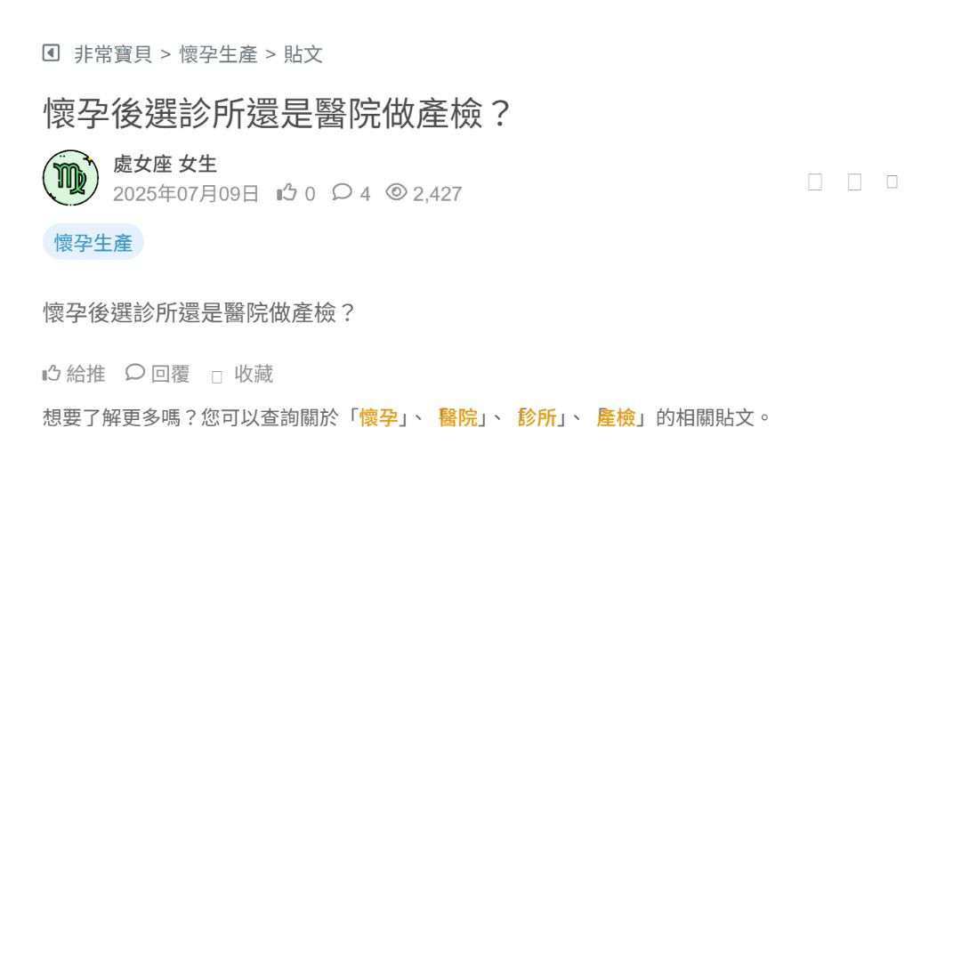最近開始準備待產,結果一直在糾結到底要去大醫院還是婦產科診所生小孩!!😵💫 大醫院醫療資源比較好,但聽說人超多超忙,護士根本沒時間理產婦(你) 婦產科診所感覺比較溫馨、服務好,但又怕遇到突發狀況會來不及處理…… 各位生過的媽媽們,你們怎麼選的啊?😱 看更多