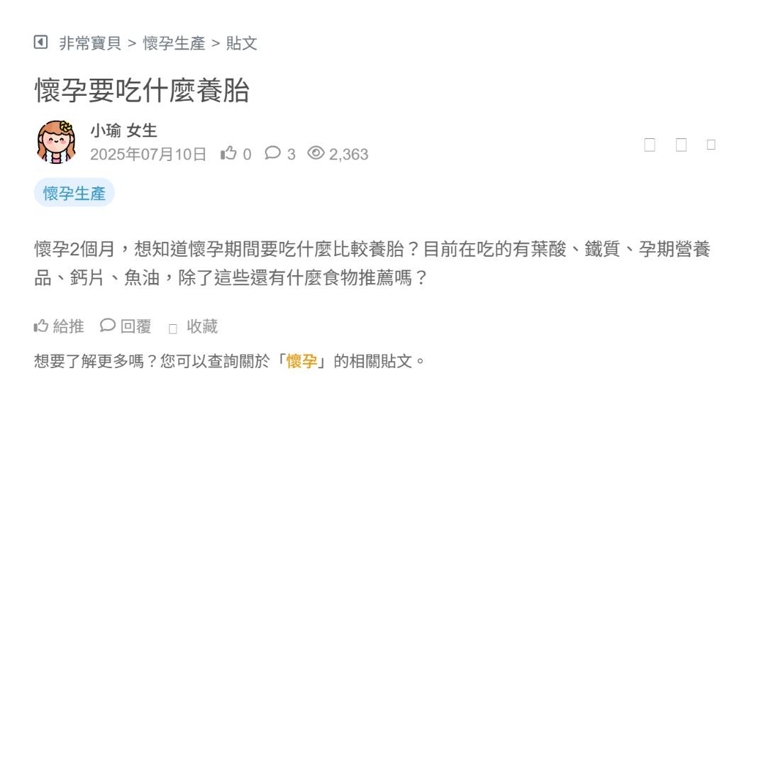 想知道孕期可以吃的零食,目前已經2個月🥹感謝大家 看更多