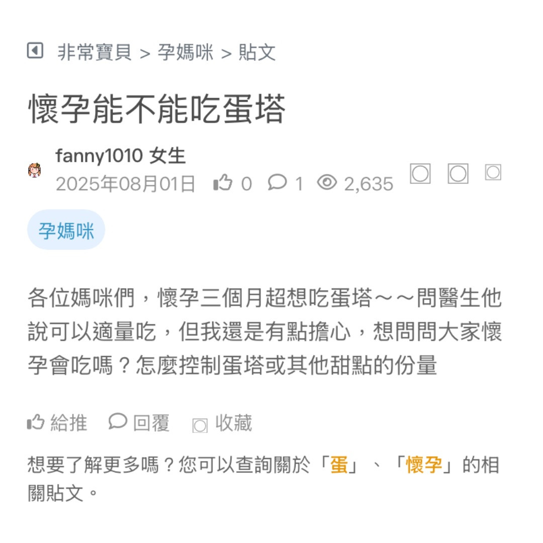 各位媽咪們,懷孕三個月超想吃蛋塔~~問醫生他說可以適量吃,但我還是有點擔心,想問問大家懷孕會吃嗎?怎麼控制蛋塔或其他甜點的份量