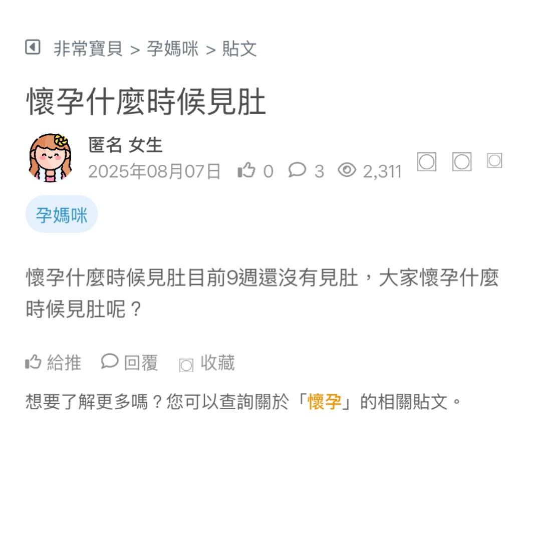 懷孕什麼時候見肚目前9週還沒有見肚,大家懷孕什麼時候見肚呢?