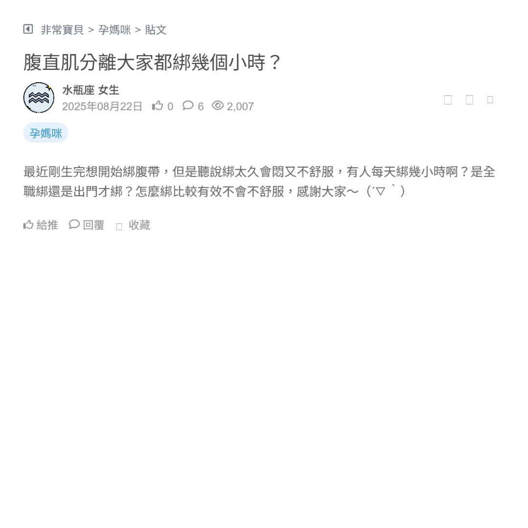 最近剛生完想開始綁腹帶,但是聽說綁太久會悶又不舒服,有人每天綁幾小時啊?是全職綁還是出門才綁?怎麼綁比較有效不會不舒服,感謝大家~(´▽`)
