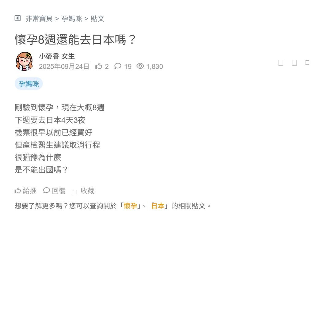 懷孕8週還能去日本嗎?