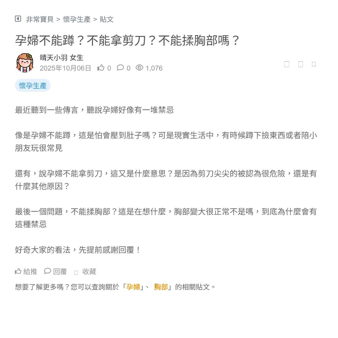 孕婦不能蹲?不能拿剪刀?不能揉胸部嗎?