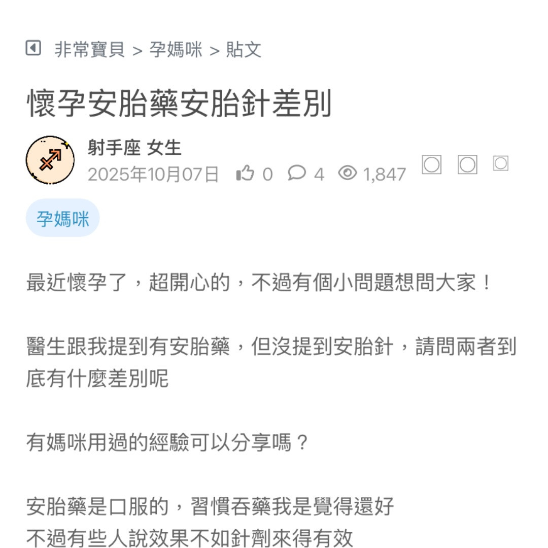 醫生跟我提到有安胎藥,但沒提到安胎針,請問兩者到底有什麼差別呢