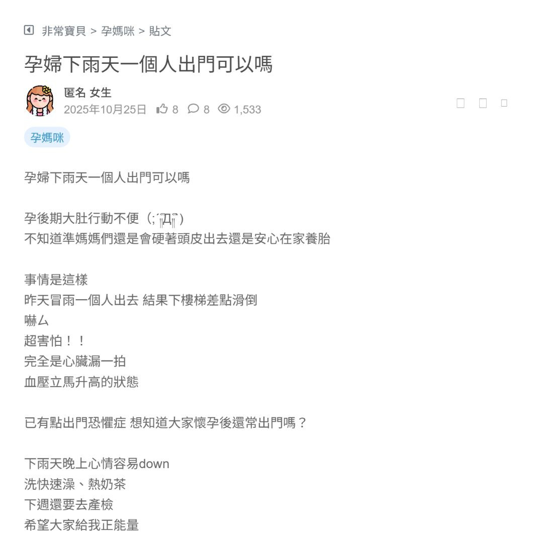 孕婦下雨天一個人出門可以嗎